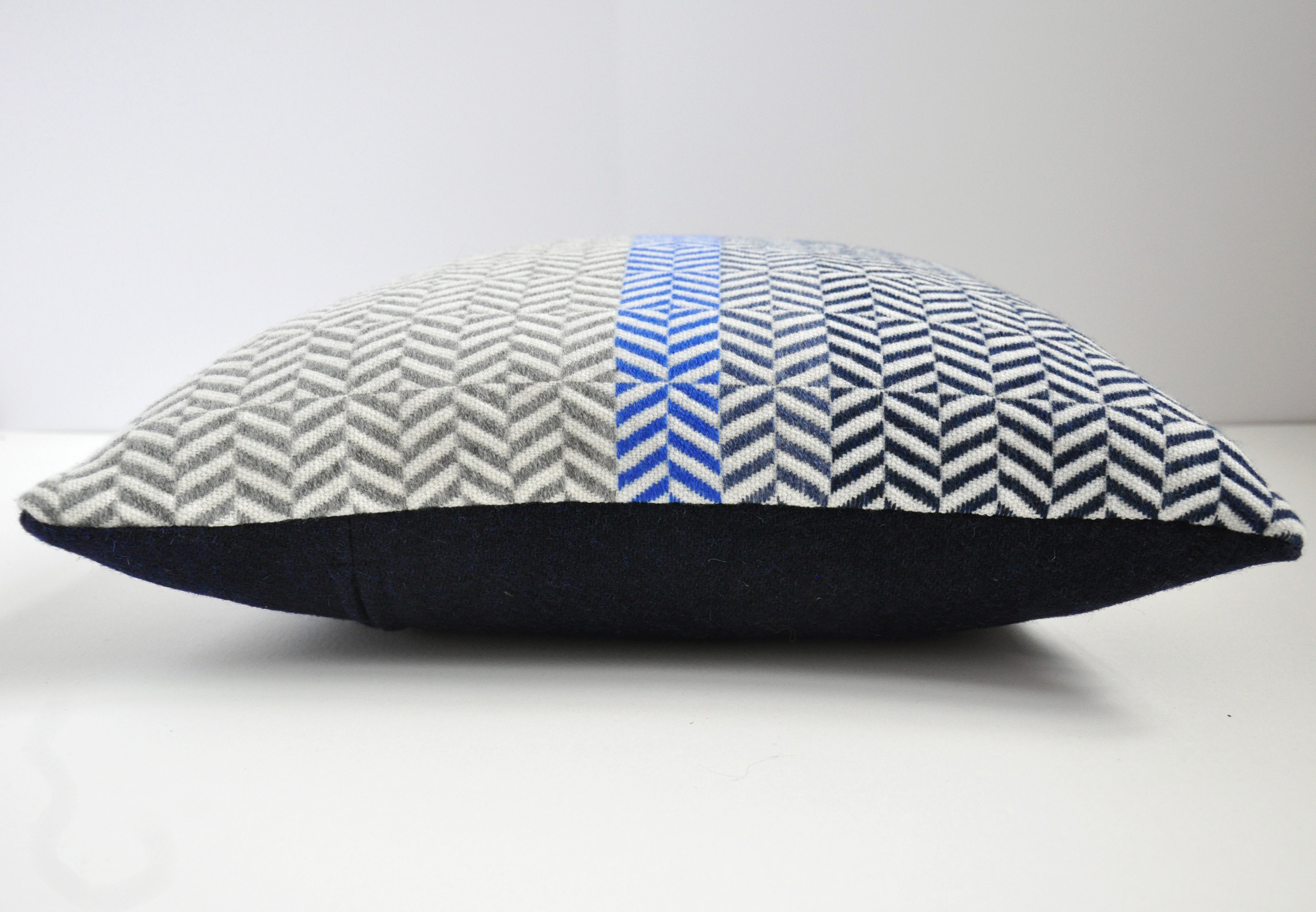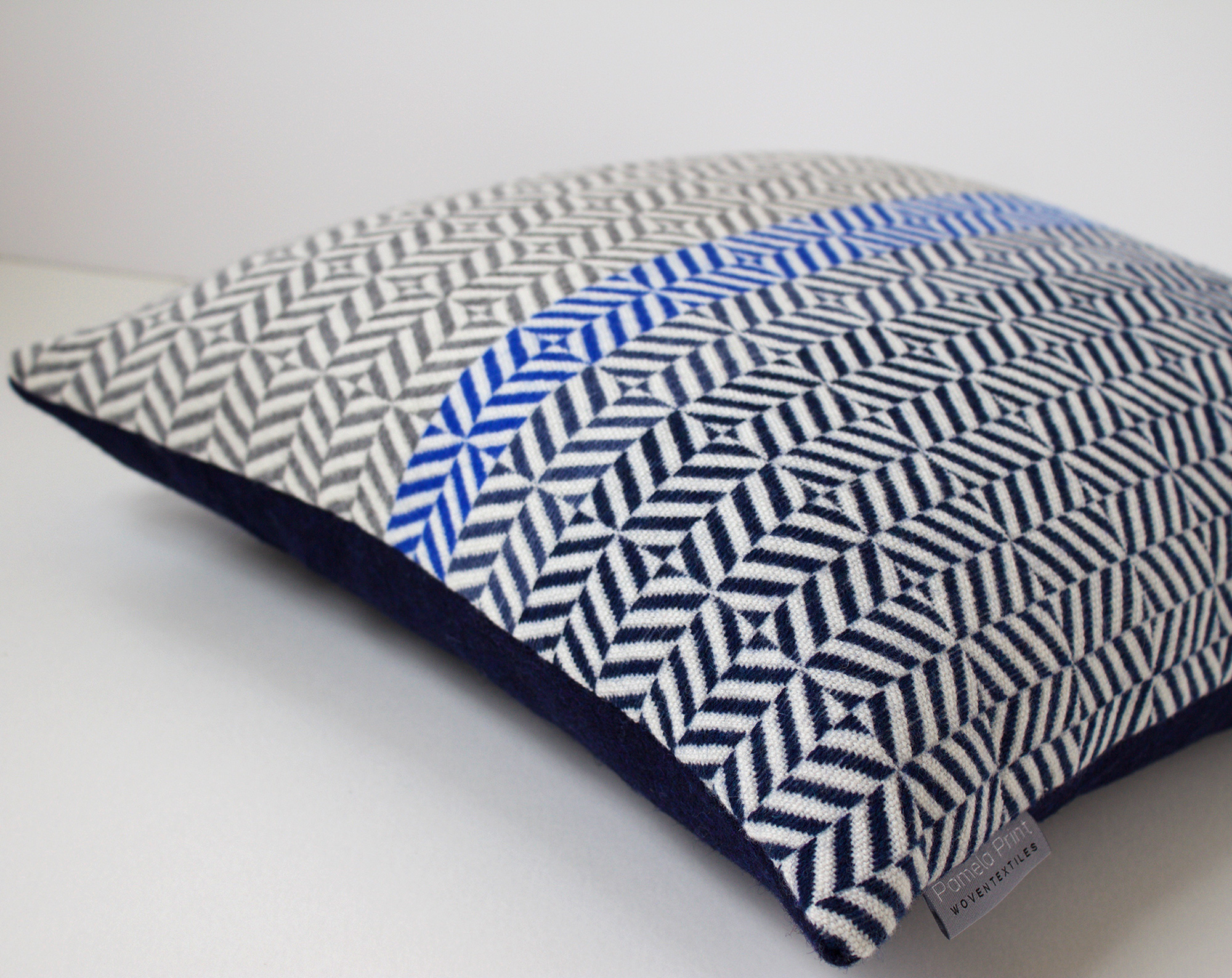 Handwoven on a dobby loom in my studio using soft merino lambswool and a traditional extra weft weaving technique, each cushion is meticulously made by hand.